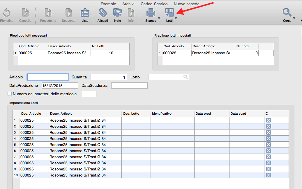 Ora è possibile scegliere tra due modalità diverse per l’acquisizione dei lotti/matricole durante l’inserimento e la modifica delle registrazioni di carico-scarico e dei documenti fiscali. Utilizzando il pulsante “Lotti” presente nella barra degli strumenti, si potranno acquisire i lotti inserendo in sequenza il codice articolo e il lotto/matricola – o meglio ancora leggendo le due informazioni con un lettore di codici a barre. Questa modalità di acquisizione delle informazioni permette di ottenere due vantaggi rispetto a quella tradizionale: si possono acquisire lotti e matricole di articoli diversi da una stessa finestra di lavoro e il programma esegue un’ulteriore verifica che il codice articolo che si sta lavorando corrisponda a quello che è stato indicato nella registrazione che si sta inserendo.