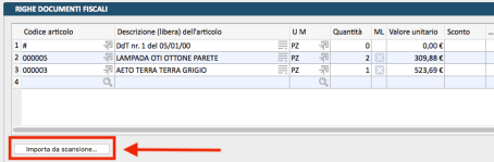 Nelle schede di carico-scarico, documenti fiscali, ordini clienti e ordini fornitori è stato aggiunto un pulsante “Importa da scansione…” subito al di sotto delle griglie degli articoli.