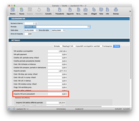L’importo dell’IVA degli acquisti relativi ad anni precedenti viene riportato sia nella scheda della Liquidazione IVA (Tabelle -> Contabilità -> Liquidazioni IVA), sia nei riepiloghi IVA di dettaglio della liquidazione.