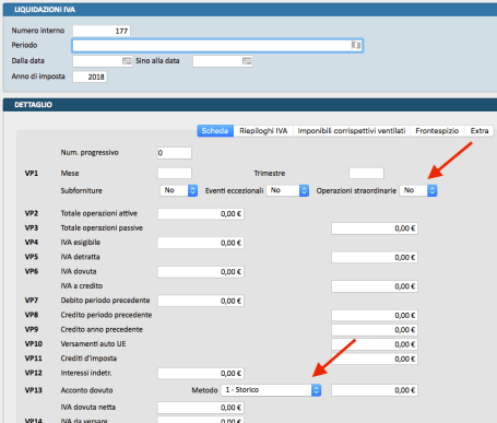 Nella nuova versione del programma sono state aggiunte queste due nuove informazioni nelle schede della tabella Liquidazioni IVA (Tabelle -> Contabilità), esse vengono pre-compilate e possono essere modificate prima della generazione del file XML da trasmettere.