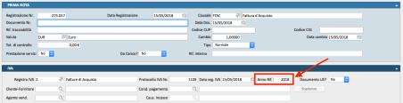 L’anno di riferimento IVA viene compilato automaticamente dal programma uguale all’anno della data di competenza IVA, l’unico caso in cui l’utente dovrà modificare il valore dell’anno di riferimento IVA sarà appunto nel momento in cui si stia registrando una fattura di acquisto ricevuta in anni precedenti e che, per vari motivi, non si è potuta registrare nello stesso anno in cui si è ricevuto il documento. Le registrazioni IVA con un anno di riferimento IVA diverso dall’anno di competenza IVA, verranno stampate nel registro IVA del periodo di competenza, ma non contribuiranno alla detrazione IVA al momento del calcolo della liquidazione IVA periodica.