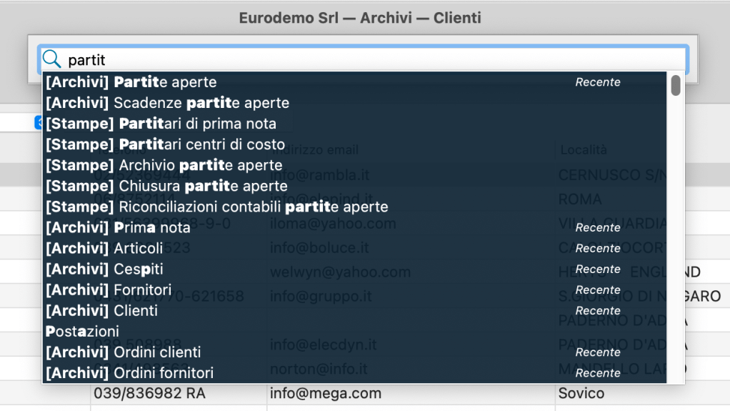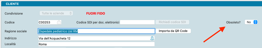 Nella scheda dei Clienti e dei Fornitori è ora possibile indicare che si tratta di un cliente-fornitore “obsoleto”. Le schede obsolete appariranno “ingrigite” nella visione a lista e non compariranno nelle ricerche contestuali nelle finestre di completamento di codice o ragione sociale.