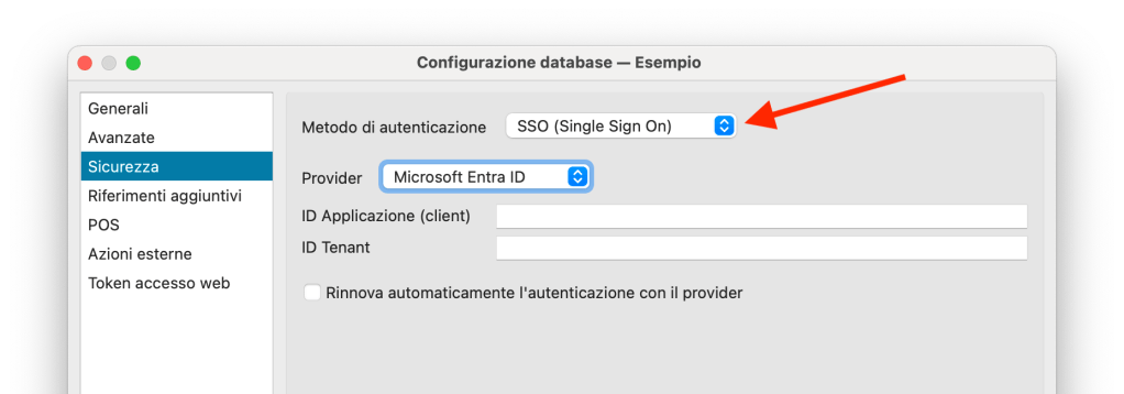 Nella nuova versione del programma sono state previste delle nuove modalità di autenticazione degli utenti, per renderlo ancora più sicuro e rendere l’accesso sempre più veloce: l’autenticazione a due fattori e il “Single Sign-On (SSO)”. L’autenticazione a due fattori si attiva nella sezione “Sicurezza” della “Configurazione del database”, una volta attivata, dopo la richiesta di nome utente e password, apparirà un QR-Code che permetterà di abbinare una applicazione per la generazione dei codici di sicurezza (OTP), che dovrà essere installata sul device dell’utente (Google Authenticator, Microsoft Authenticator, etc…). A partire dal secondo accesso, verrà richiesto di inserire il codice di sicurezza generato dal device personale, quale secondo fattore di sicurezza.