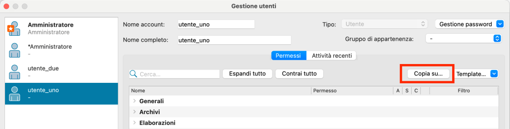 - Aggiunta la funzionalità per copiare i permessi da un utente ad uno o più altri utenti