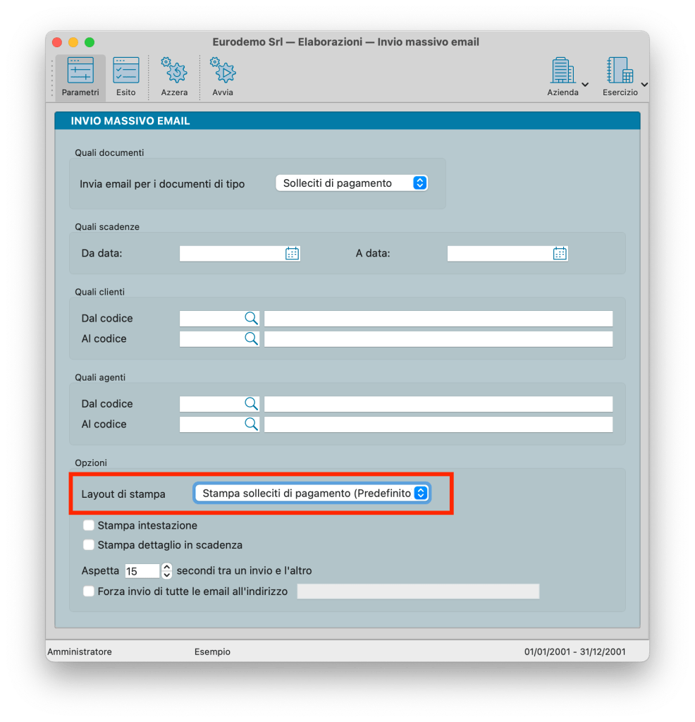 - Aggiunta la possibilità di scegliere il layout di stampa nell’invio massivo email (per i pdf allegati)