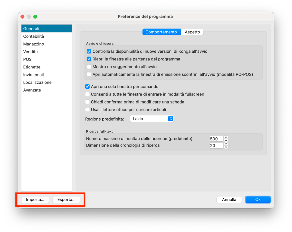 - Aggiunta la funzionalità di importazione/esportazione delle preferenze del programma