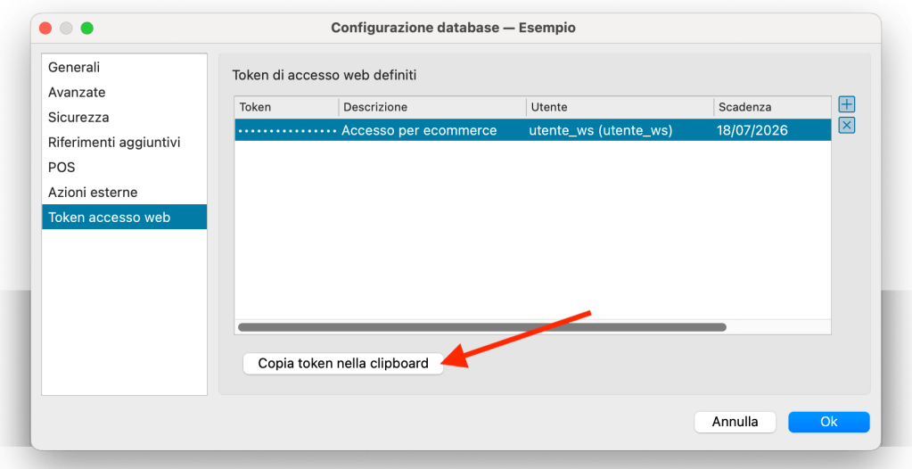 Per ottenere il valore del Token occorrerà poi selezionarlo e utilizzare il pulsante “Copia token nella clipboard”, sarà quindi possibile eseguire un incolla per ottenere il valore del token e utilizzarlo per l’accesso. Questo token va usato in un header HTTP opportunamente predisposto nella forma:Authorization: Bearer <token>