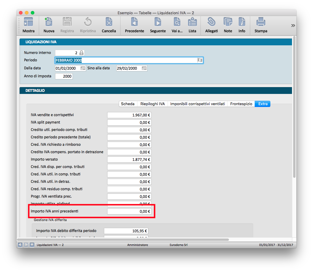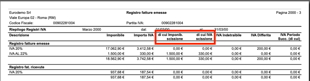 - Modificata la stampa della liquidazione periodica IVA in modo da riportare nel riepilogo anche l’importo dell’imponibile e dell’IVA di tipo “scissione dei pagamenti”