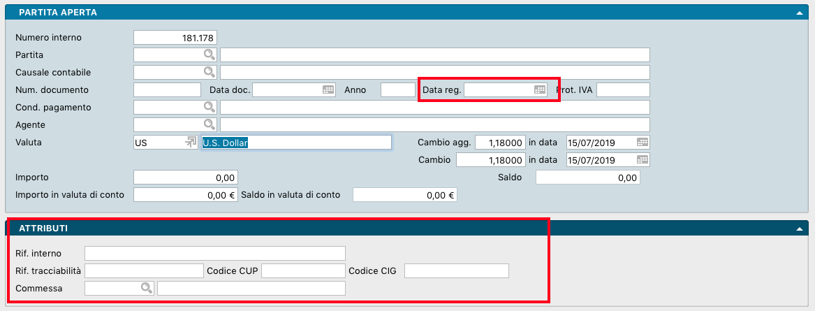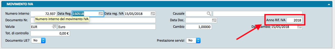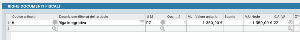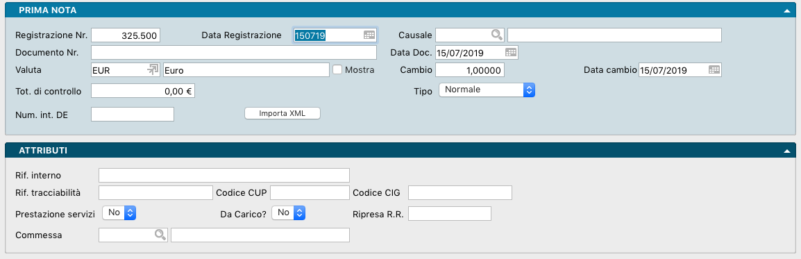 Lasciando invece i campi vuoti, il programma genererà la sola registrazione integrativa IVA in prima nota, senza creare il documento fiscale.