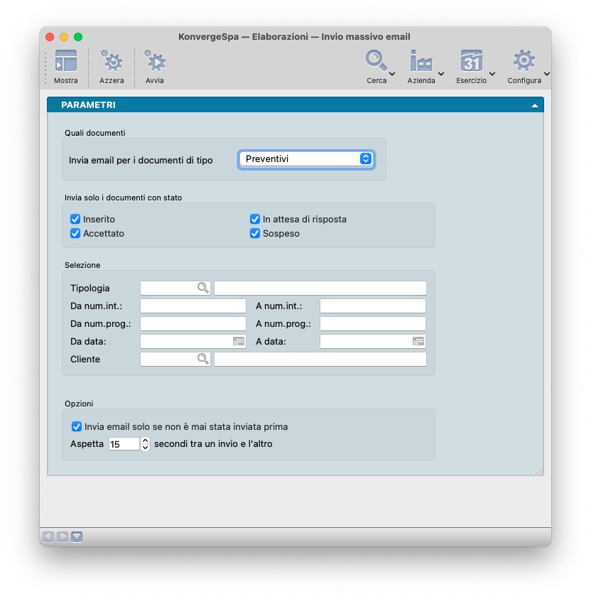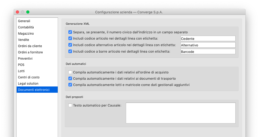 Per ottenere la generazione automatica del documento da inviare al SDI sarà sufficiente possedere la licenza di Konga modulo “V” (vendite) e compilare gli appositi campi nella tabella dei codici fissi.
