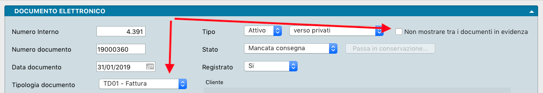 Nel caso in cui i campi relativi alle tipologie dei documenti di integrazione vengano compilati, il programma genererà automaticamente il documento fiscale corrispondente nell’archivio dei documenti fiscali, pronto per eventualmente essere confermato e inviato al SDI (Sistema di Interscambio dell’Agenzia delle Entrate).