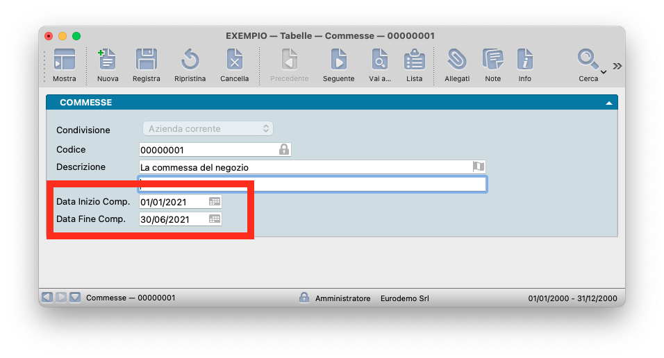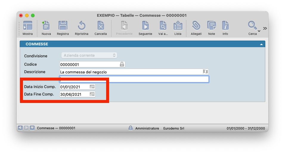 - Aggiunti i campi Data Inizio Competenza e Data Fine Competenza nella scheda della tabella Commesse
