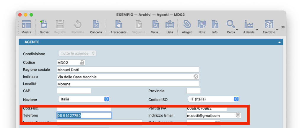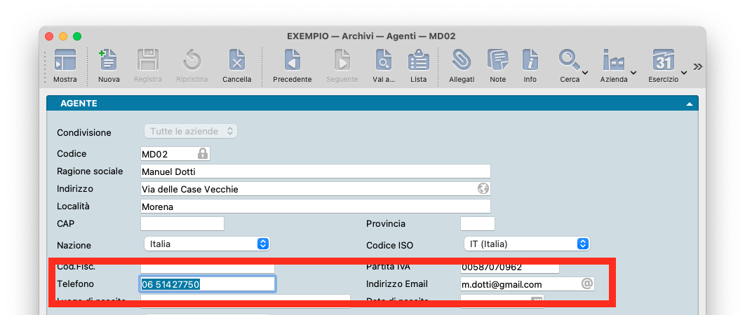 Sono stati aggiunti due nuovi campi nella scheda dell’archivio degli Agenti: Telefono e Indirizzo email.