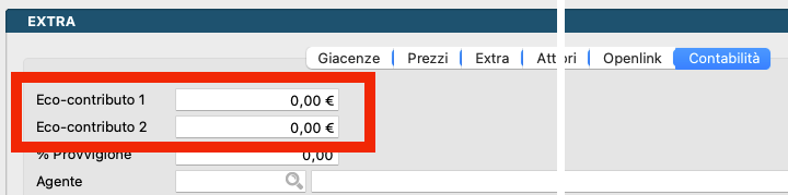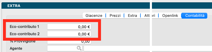 Il programma è stato predisposto per la gestione automatica degli eventuali eco-contributi (al massimo due tipologie di eco-contributi per azienda), come ad esempio RAEE (Rifiuti da Apparecchiature Elettriche ed Elettroniche), eventuali altri eco-contributi futuri, oppure anche per la gestione di contributi di altra natura: SIAE (compenso per “copia privata”), etc…