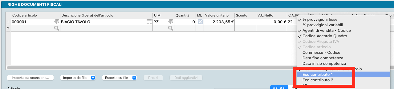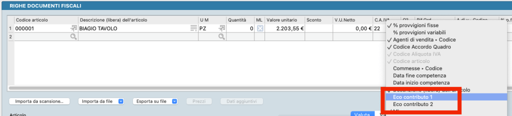Gestione degli Eco-Contributi negli articoli, preventivi, ordini da clienti e documenti fiscali