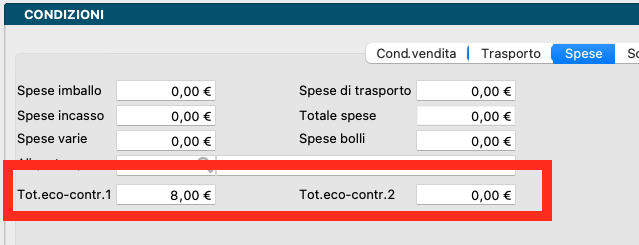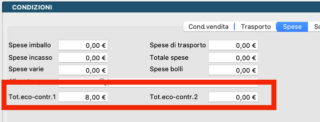 Il totale degli importi dell’eco-contributo viene calcolato e riportato nella sezione “Spese” del documento e riportato nel castelletto IVA, aumentando sia l’imponibile, sia l’eventuale importo IVA del documento.